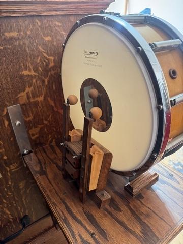 Percussion: 16" bass, 13" snare, 11" cymbal drums are exact replications of a style 105.
