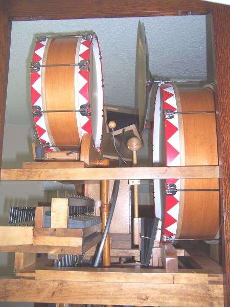 Built a Capstan bar to adjust the "end play" of the jacks. THIS was a BIG over site that had snowballed in the previous restoration and made a very sloppy action. Its like taking the Capstan screws out of the back of a piano keys. The action just hangs. Because of this the pneumatics where made with to large of an opening to compensate for the extra movement that had to be made for the notes to play. (see details on picture) Normally for a note to play you need 3/8 to 1/2" of movement. As it was, it needed 7/8". Almost twice the movement. Now the action is back to regular regulation specs. All complete!
